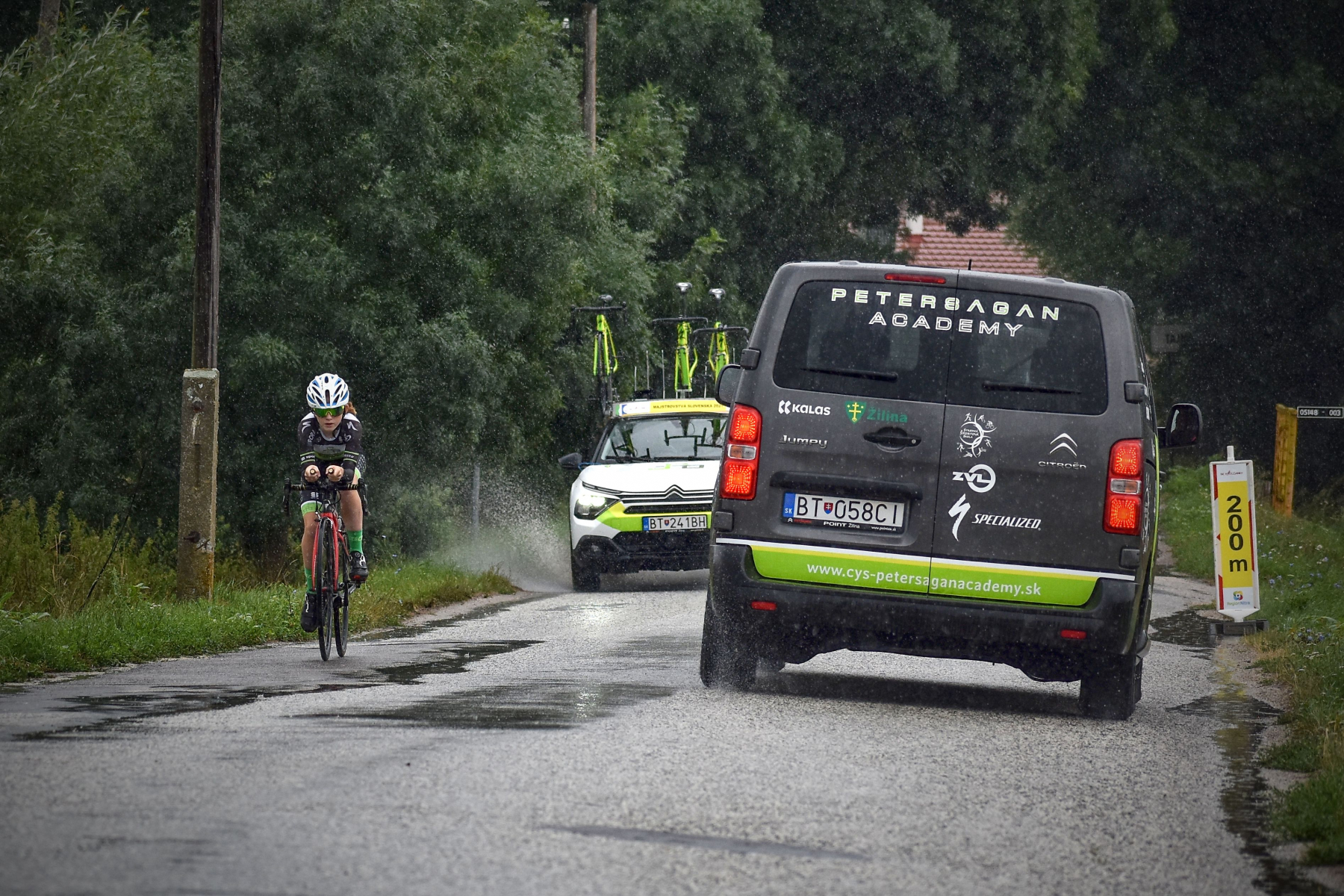 V nedeľu na cestných pretekoch v Tlmačoch nám už chýbali Ciriaková a aj Cesnek, ktorí odišli na preteky MTB XCO do Poráča. Pódiových umiestnení sme nedosiahli toľko ako v sobotu na kriťériu, ale pred majstrákmi ukázala väčšina našich pretekárov dobrú formu. Len treba do toho dať ešte trochu viac taktického myslenia a asi by bola dobrá aj lepšia tímová spolupráca – taká akú ukázali naši mladší žiaci spolu s Emmou Galovičovou.